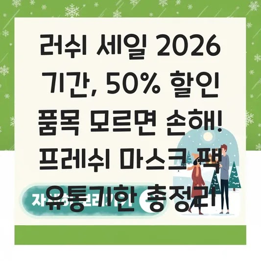 Q5: 러쉬 세일은 1년에 딱 한 번인가요? 다음 세일은 언제인가요? A: 러쉬 프레쉬 세일은 1년에 한 번, 보통 1월에 진행됩니다. 이 외에 연중에는 소규모 이벤트나 프로모션이 있을 수 있지만, 대규모 50% 할인은 이 시기에만 진행되는 것이 일반적입니다.