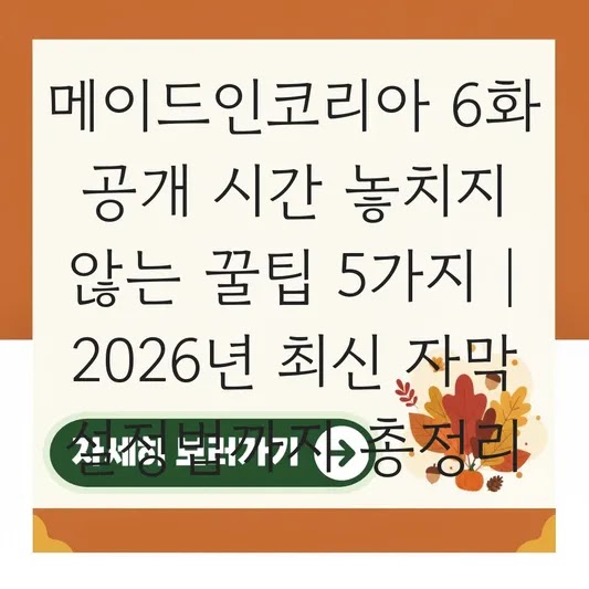 기업 컨설턴트로 일하면서 가장 많이 하는 일이 '정보의 비효율'을 개선하는 것입니다. 드라마 시청도 마찬가지죠. 모두가 열광하는 [메이드인코리아]를 보려는데, 공개 시간을 놓치거나 자막 문제로 짜증나는 경험, 해보셨나요? 오늘은 이런 비효율을 제로로 만드는 실전 팁을 알려드립니다. 이 글을 통해 [메이드인코리아 6화]의 정확한 시청 전략을 세울 수 있습니다.