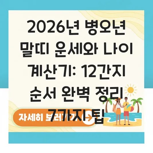 새해가 되면 누구나 한 번쯤 "올해가 무슨 띠지?" 하고 헷갈리는 경험을 합니다. 특히 2026년처럼 윤달이나 명절이 겹치는 해에는 띠 계산이 더 복잡하게 느껴지죠. 기업 컨설턴트로서 수많은 프로젝트의 비효율을 개선해 온 저는, 일상생활에서도 이런 사소한 정보 검색 시간을 줄이는 것이 중요하다고 생각합니다. 이 글은 2026년의 핵심인 병오년 말띠에 대한 정확한 정보와 12간지 순서 암기법, 그리고 나이 계산의 팁을 정리해, 독자 여러분의 시간을 절약해 드립니다.