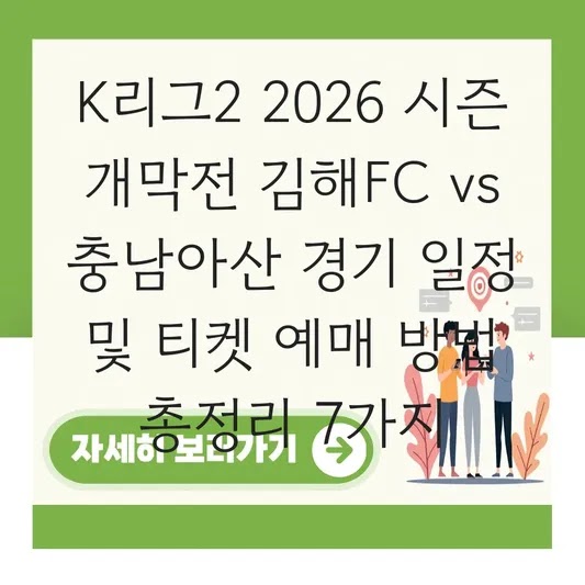 K리그2 2026 시즌이 곧 개막합니다. 신생팀 합류와 함께 어느 때보다 기대감이 높은데요. 많은 분들이 '김해FC vs 충남아산'의 경기를 개막전으로 착각하고 계신 경우가 많습니다. 기업 컨설팅에서 비효율적인 정보 오류를 수정하듯, 이 글에서는 정확한 경기 일정과 티켓 예매 방법을 명쾌하게 정리해 드립니다. 2026년 K리그2 관람을 계획하는 분들이라면, 오늘 정보를 통해 불필요한 시간 낭비 없이 완벽하게 준비할 수 있을 것입니다.