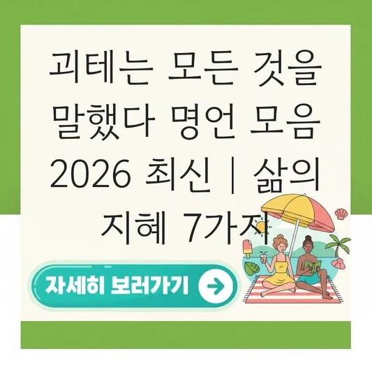 괴테는 모든 것을 말했다 명언 모음 2026 최신 | 삶의 지혜 7가지